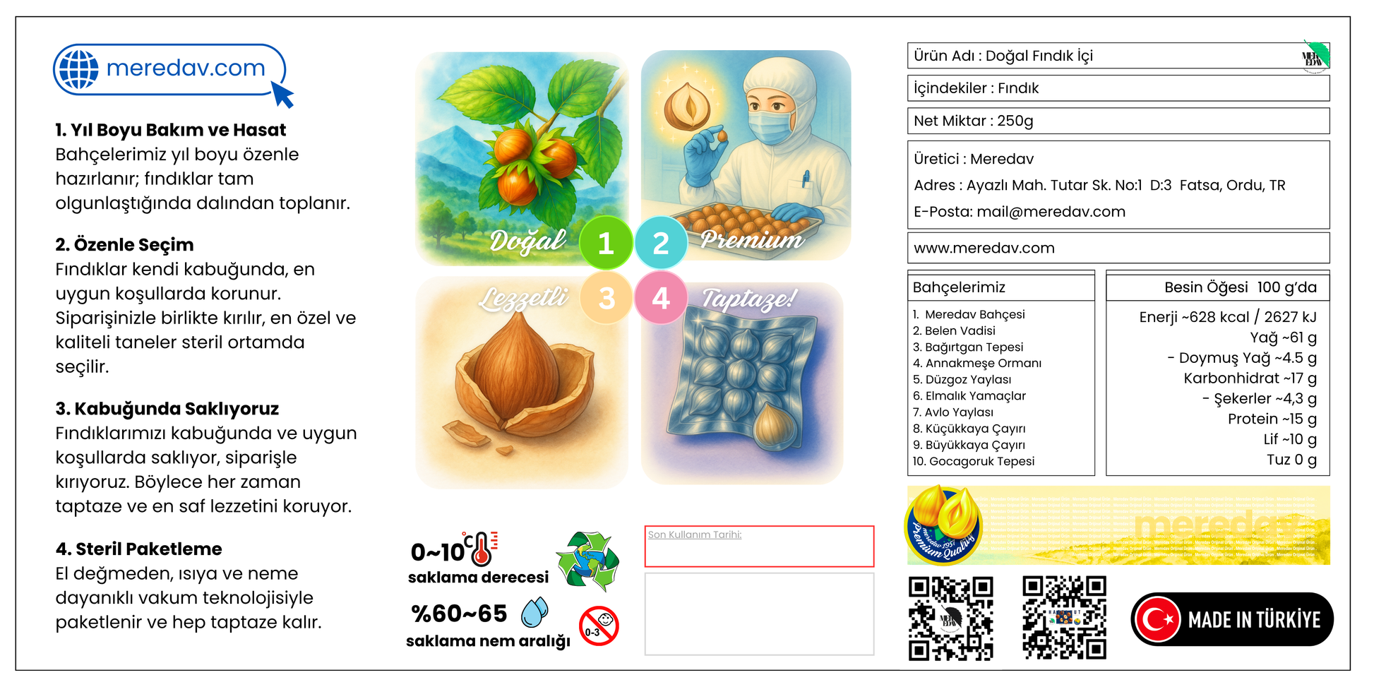Meredav Fındık İçi ile doğallığın, premium kalitenin ve Karadeniz’in saf lezzetinin tadını çıkarın.