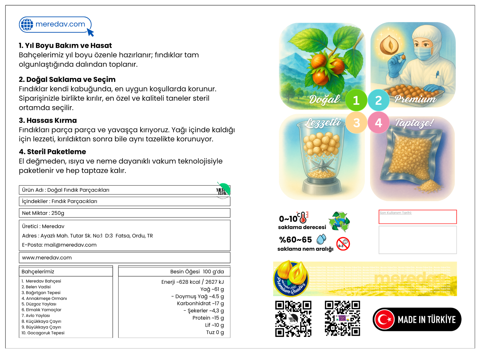 Meredav Fındık Parçacıkları ile doğallığın, premium kalitenin ve Karadeniz’in saf lezzetinin tadını çıkarın.