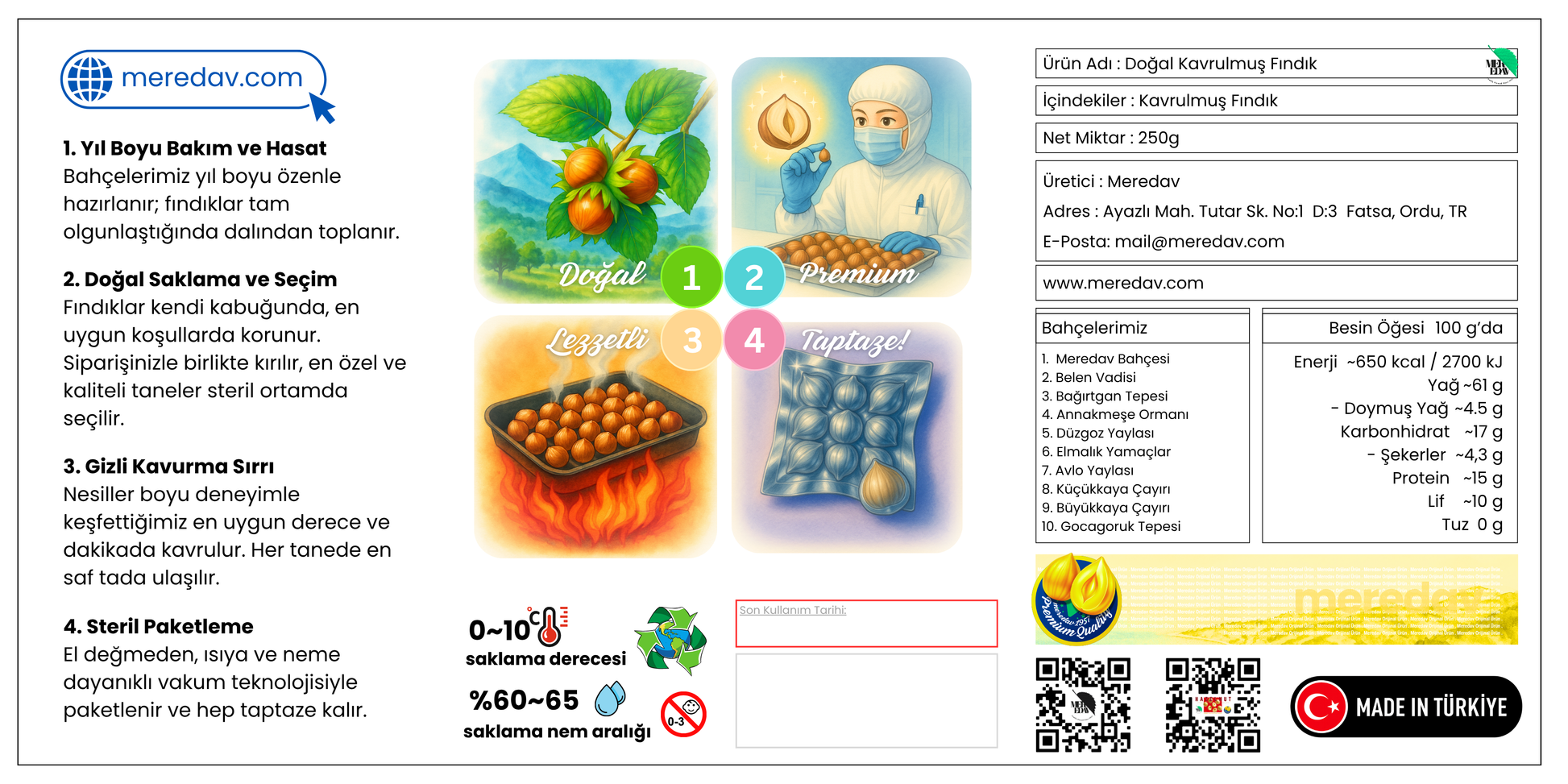 Meredav Kavrulmuş Fındık ile doğallığın, premium kalitenin ve Karadeniz’in saf lezzetinin tadını çıkarın.